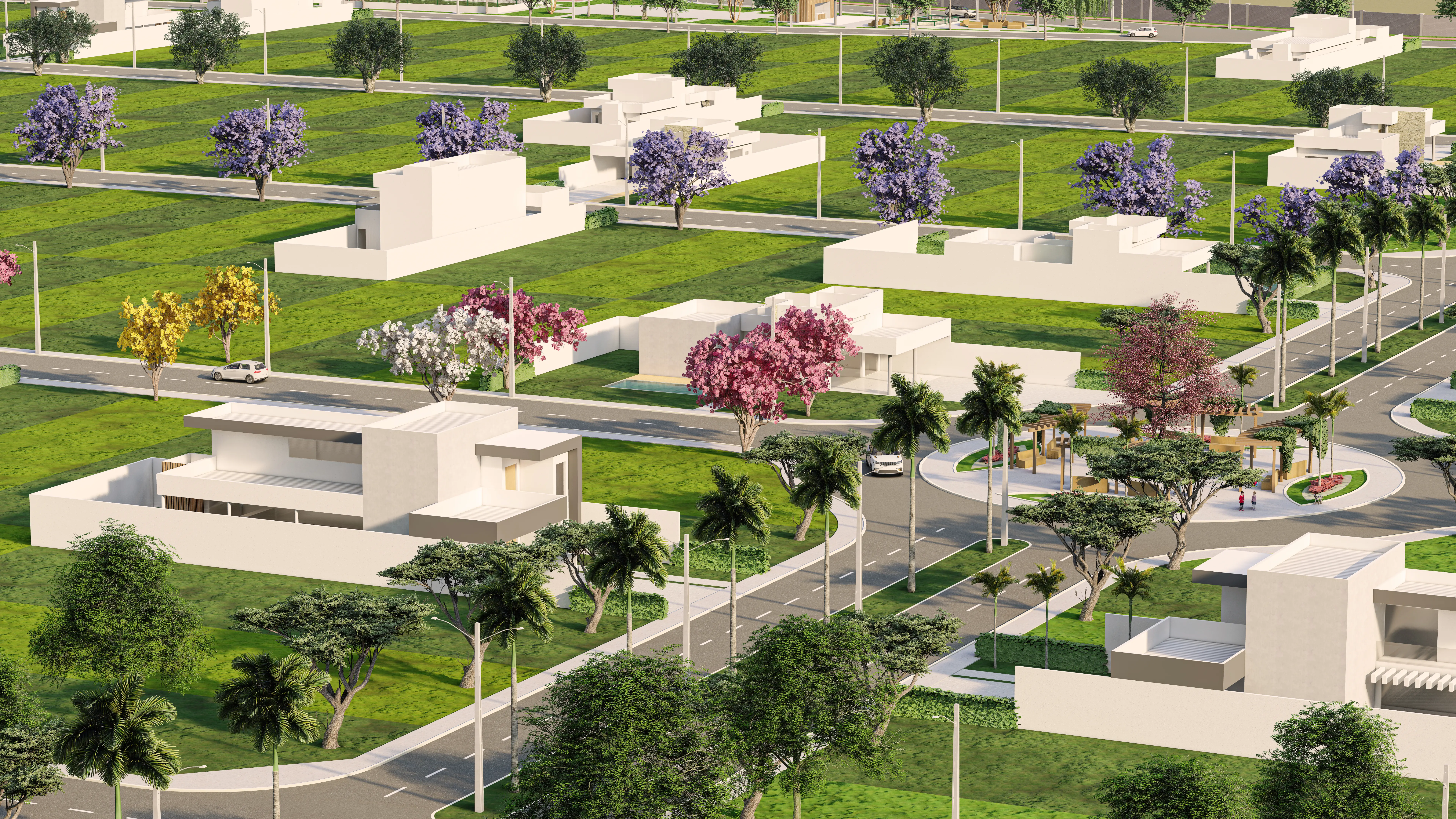 Entorno tranquilo e com uma área totalmente dedicada ao verde, o Residencial Flora contará com toda a infraestrutura de um bairro, com lotes planos prontos para construir.